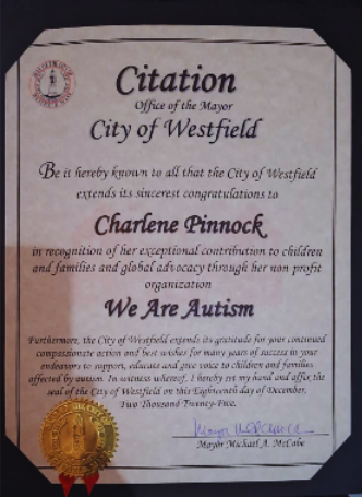 We Are Autism was formally recognized by the City of Westfield for its commitment to supporting children and families and advocating for individuals with disabilities. This recognition affirms the importance of parent education, community connection, and supporting families beyond formal services.